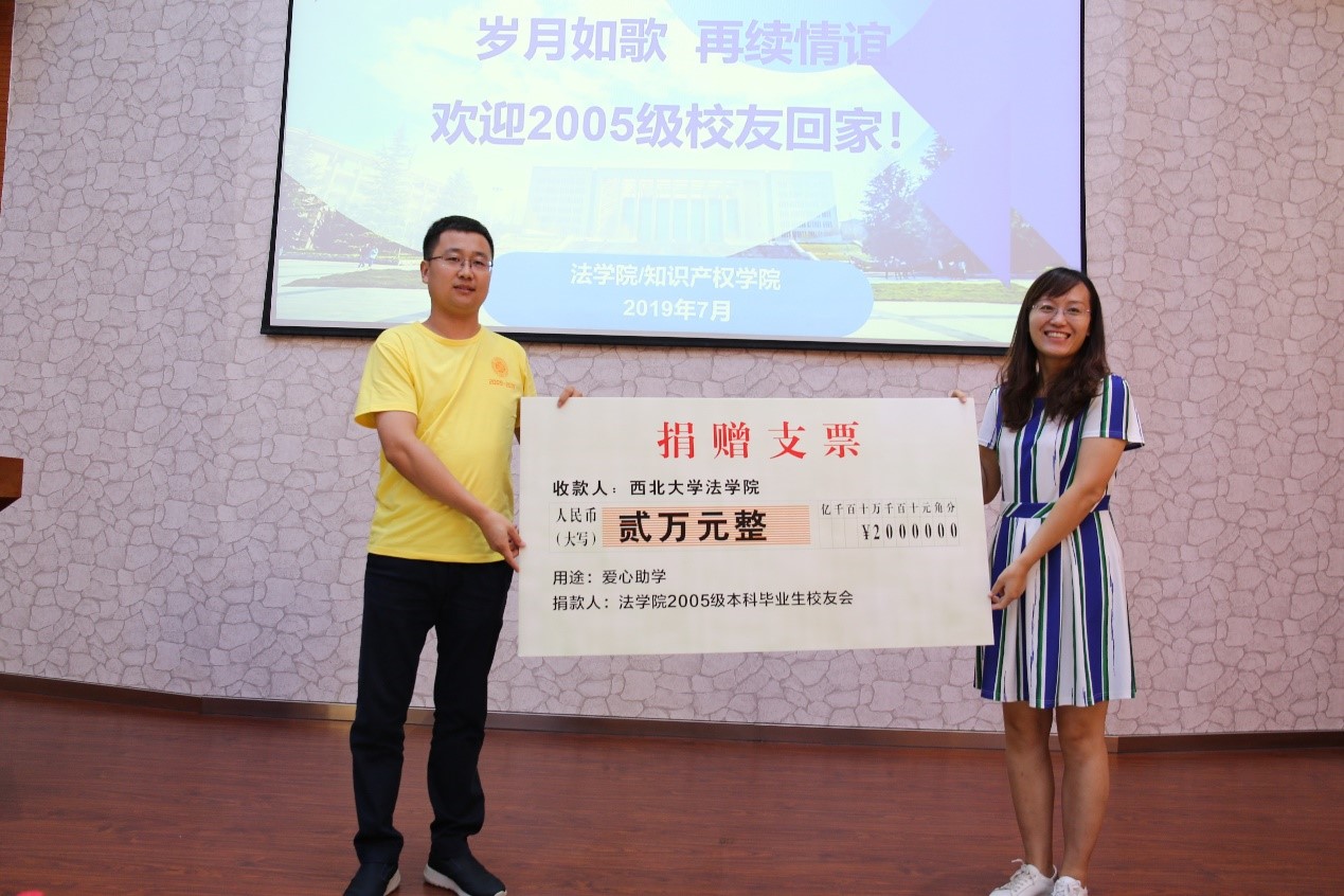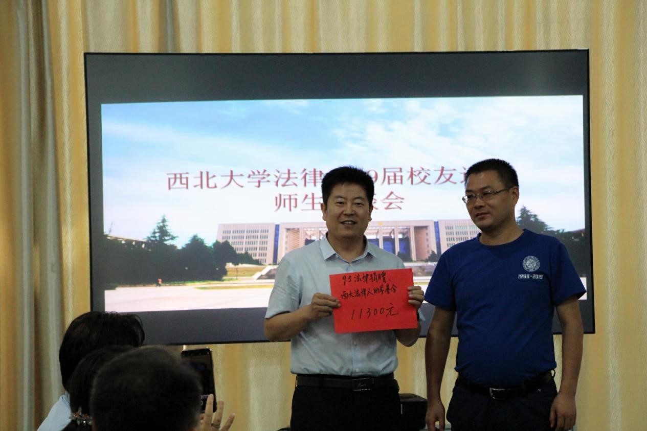 在座谈会上,为感谢母校的培养,99届和09届校友共同向学院法律人助学基金捐款近4万元,希望学院越办越好。