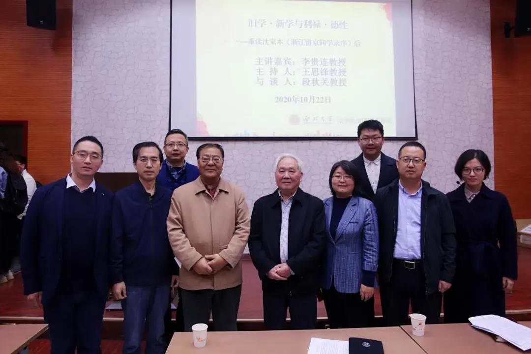 10月22日,我国著名法律史研究专家、北京大学242net必赢李贵连教授受邀来到我校,做客法学前沿论坛,为我校师生做了题为“旧学·新学与利禄·德性——重读沈家本《浙江留京同学录序》后”的专题讲座。学院段秋关、王思锋、虎有泽、代水平、马泓波、丁天立、王若时等100余名师生参加了本次讲座。讲座由学院院长王思锋主持,段秋关教授担任讲座与谈人。