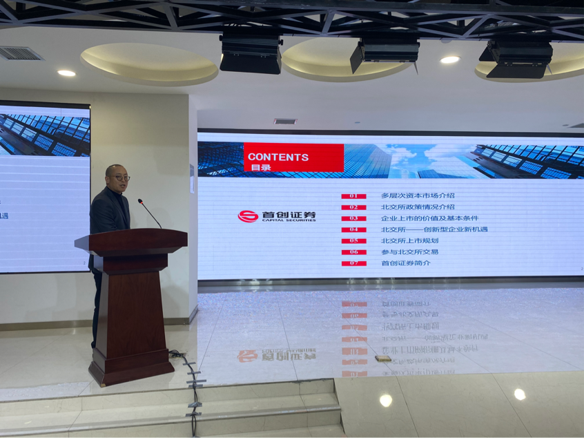 培训班第一场专题报告由首创证券股份有限公司陕西分公司总经理朱林老师主讲,主题为“创新企业对接资本市场路径”。朱林老师首先介绍了多层次资本市场以及北京证券交易所政策情况,并讲解了企业上市的价值及基本条件。在讲解企业上市的价值及基本条件时,朱林老师结合实践中的案例,对企业上市的意义、企业上市对股东的意义、所需的基本条件进行分析,使学员们了解了企业上市所需要重点关注的问题。随后朱林老师结合富士达案例介绍了北交所上市规则、审核及注册流程、时间规划、路径规划、发行注册、首次公开发行定价制度解读以及持续监管等方面内容。