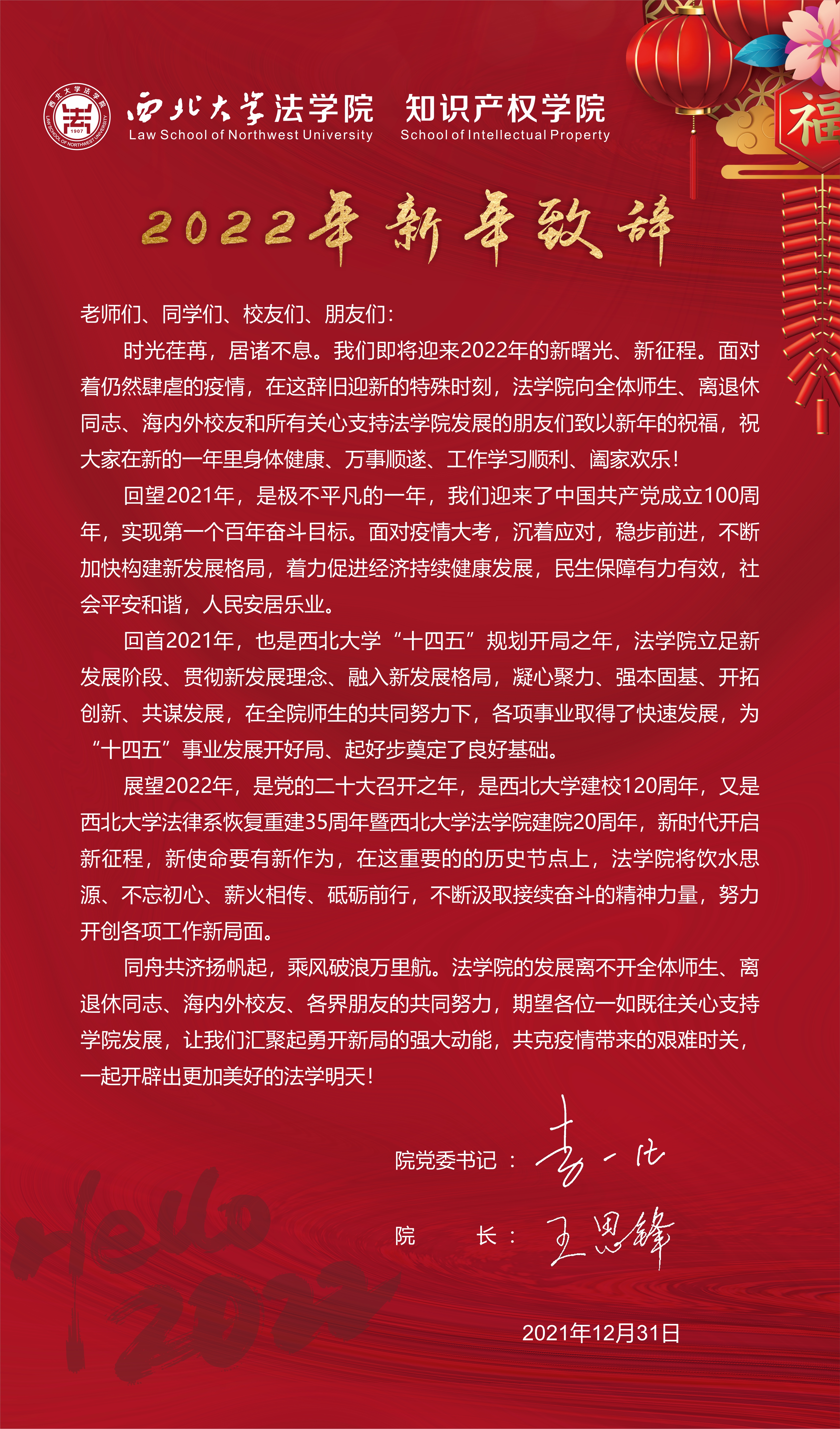 242net必赢官方(知识产权学院)2022年新年致辞