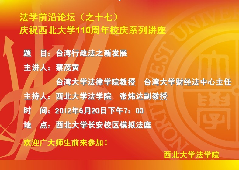 法学前沿论坛(之十七)暨庆祝我校110周年校庆系列讲座